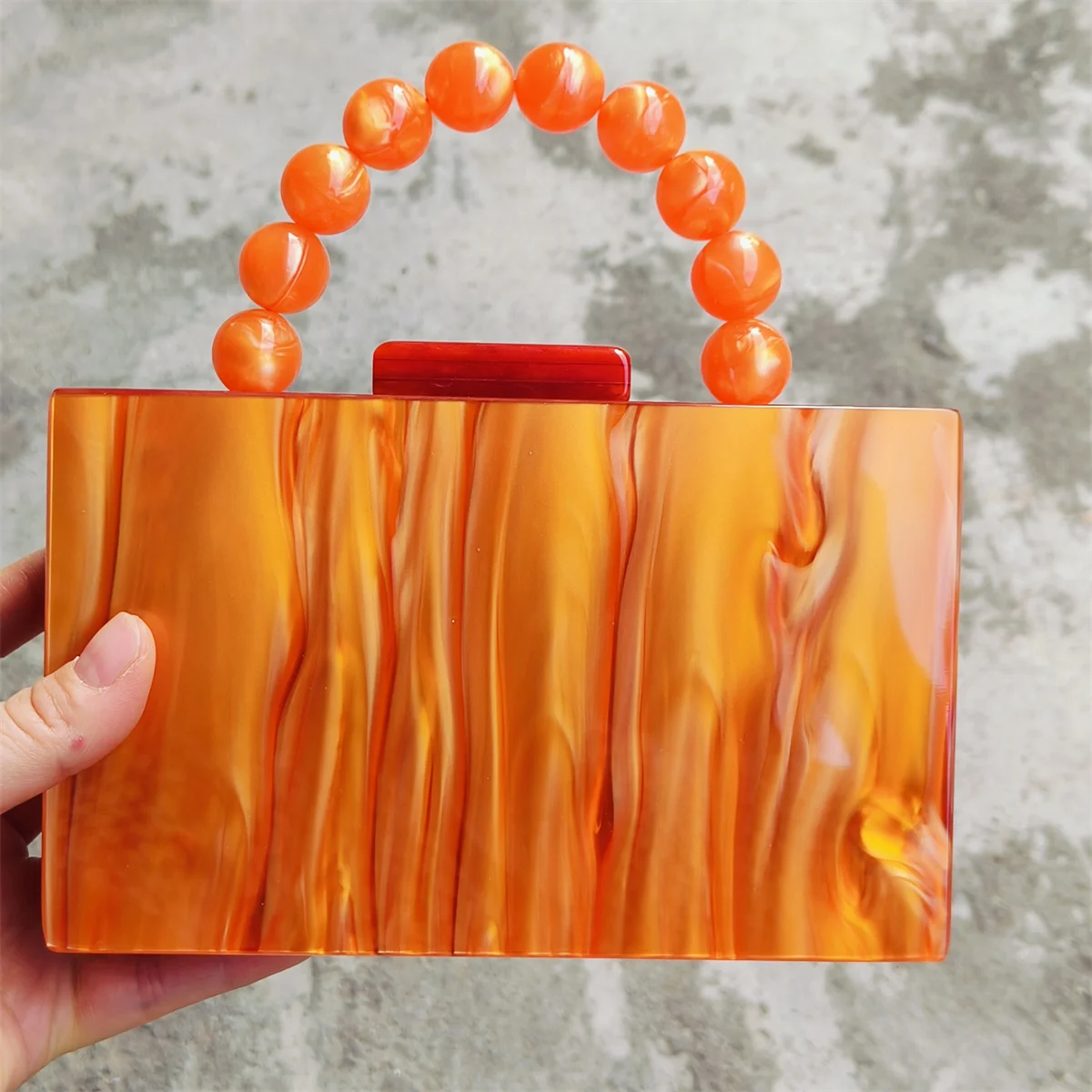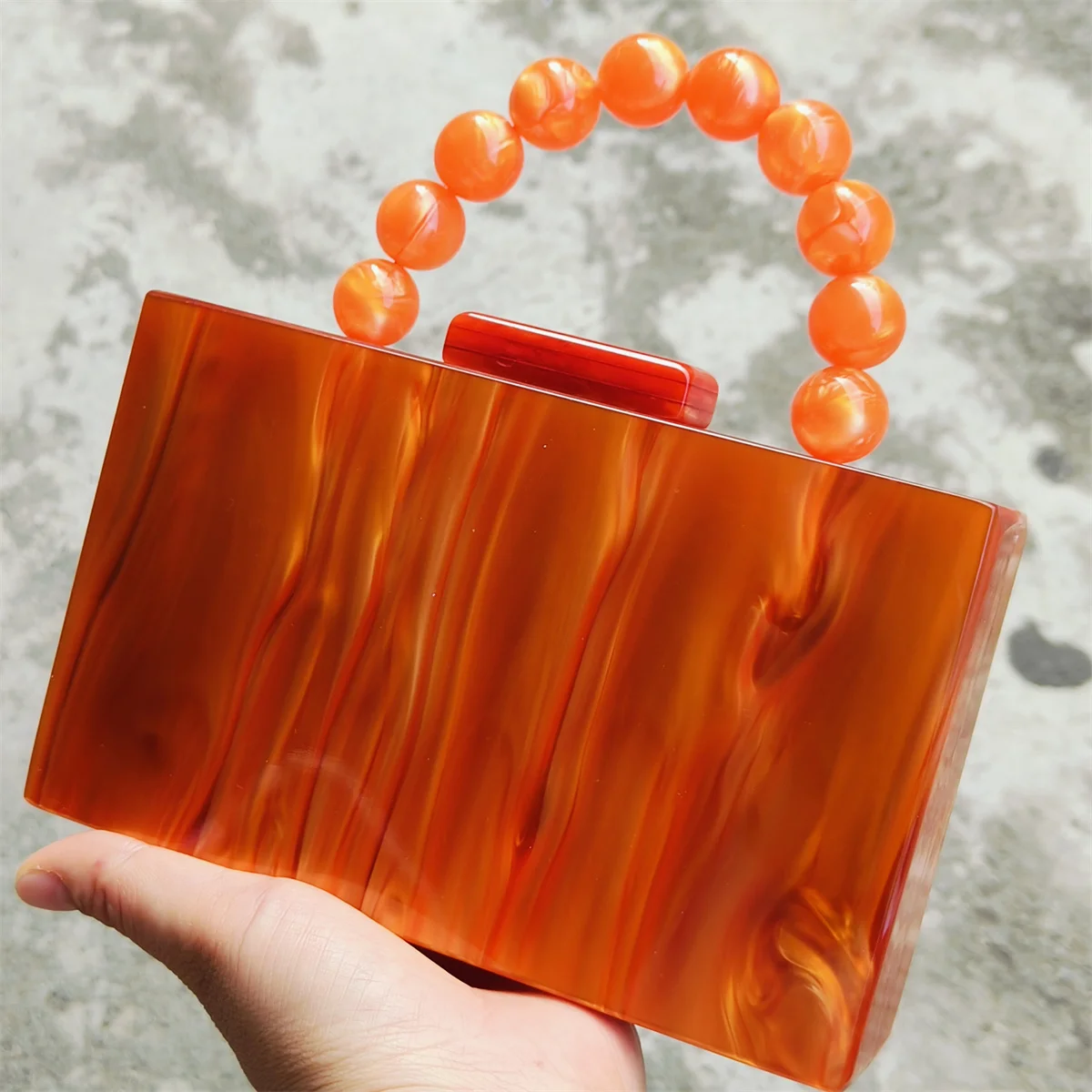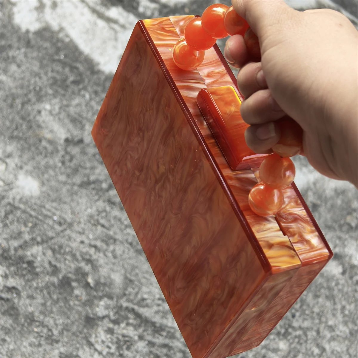 Pixor Bright Orange Marble Acrylic Box Evening Clutch Bags Women
