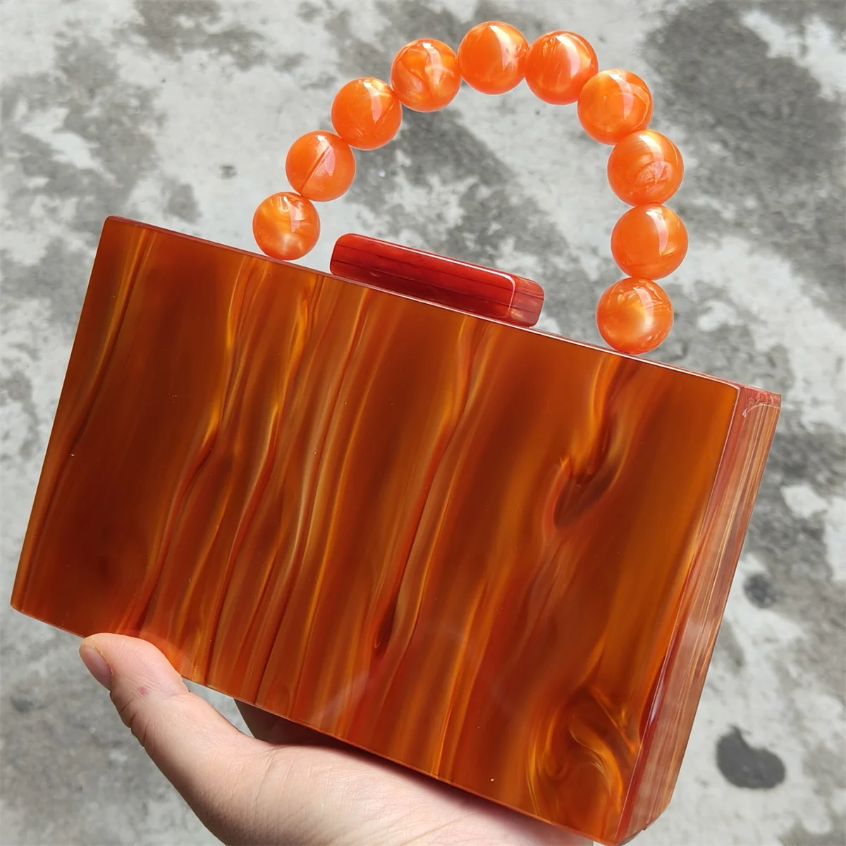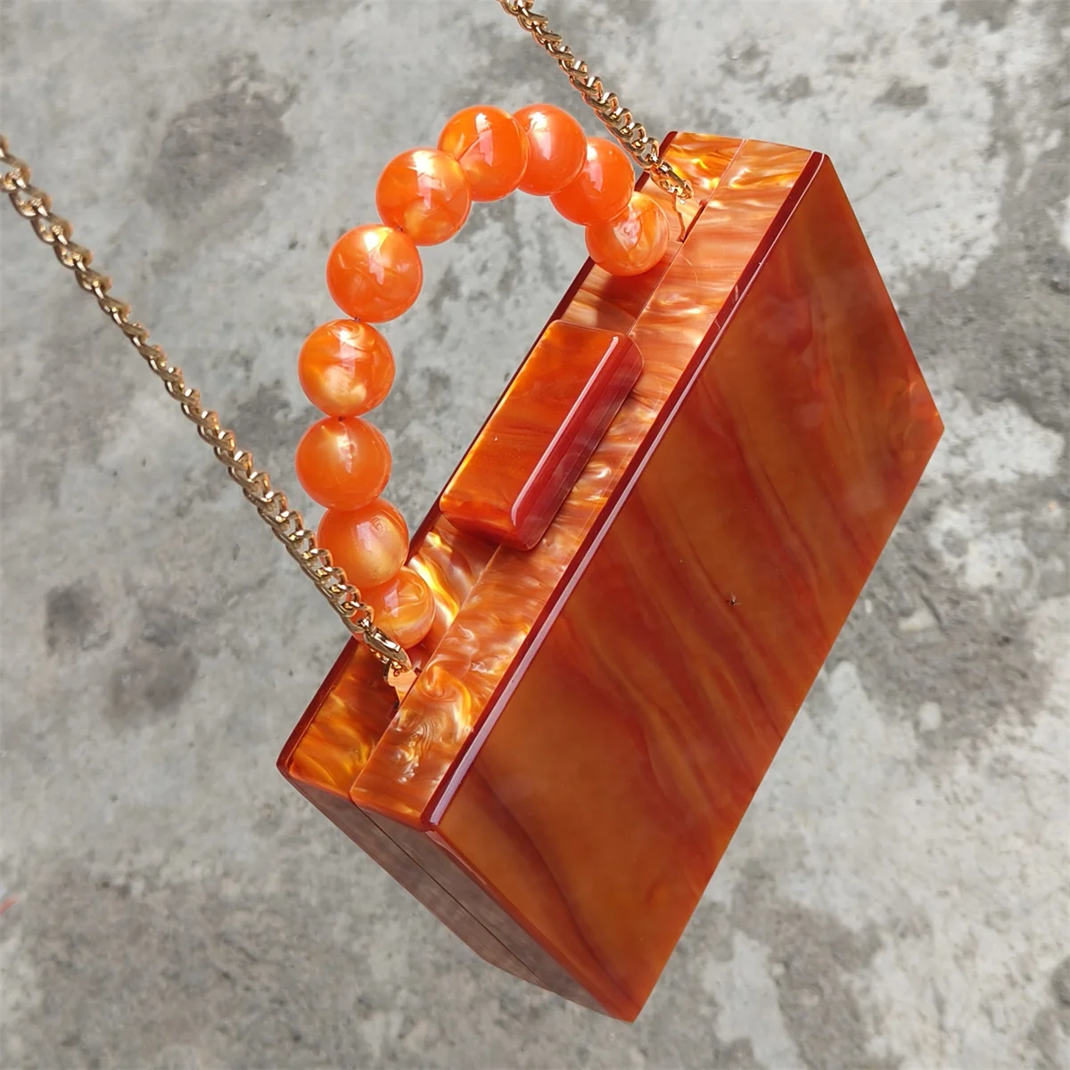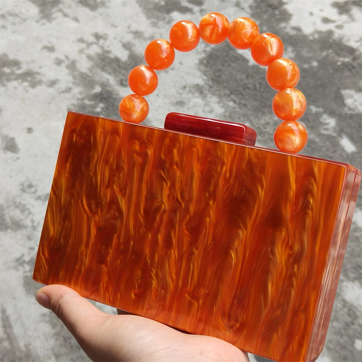 Pixor Bright Orange Marble Acrylic Box Evening Clutch Bags Women