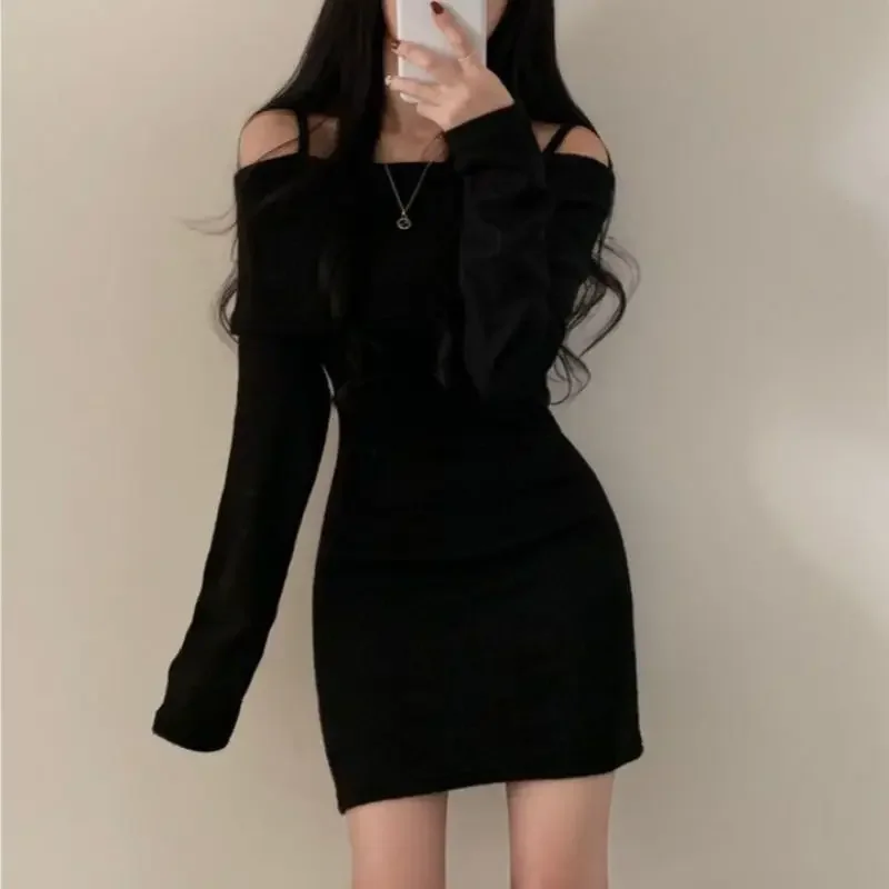 Pixor Korean Chic Knitted Dress Collar Flip Rope Texture Short Skirt Bodycon Style