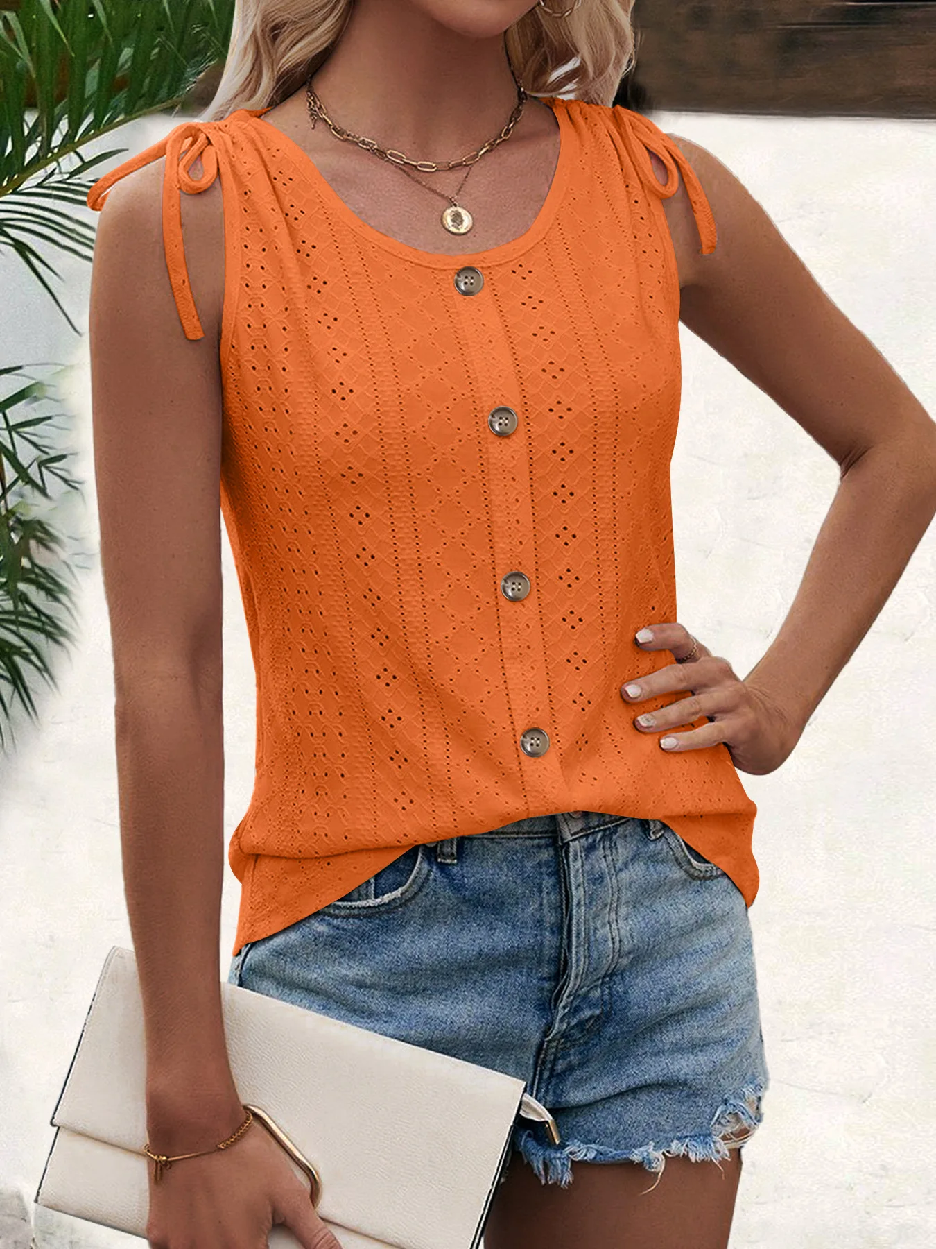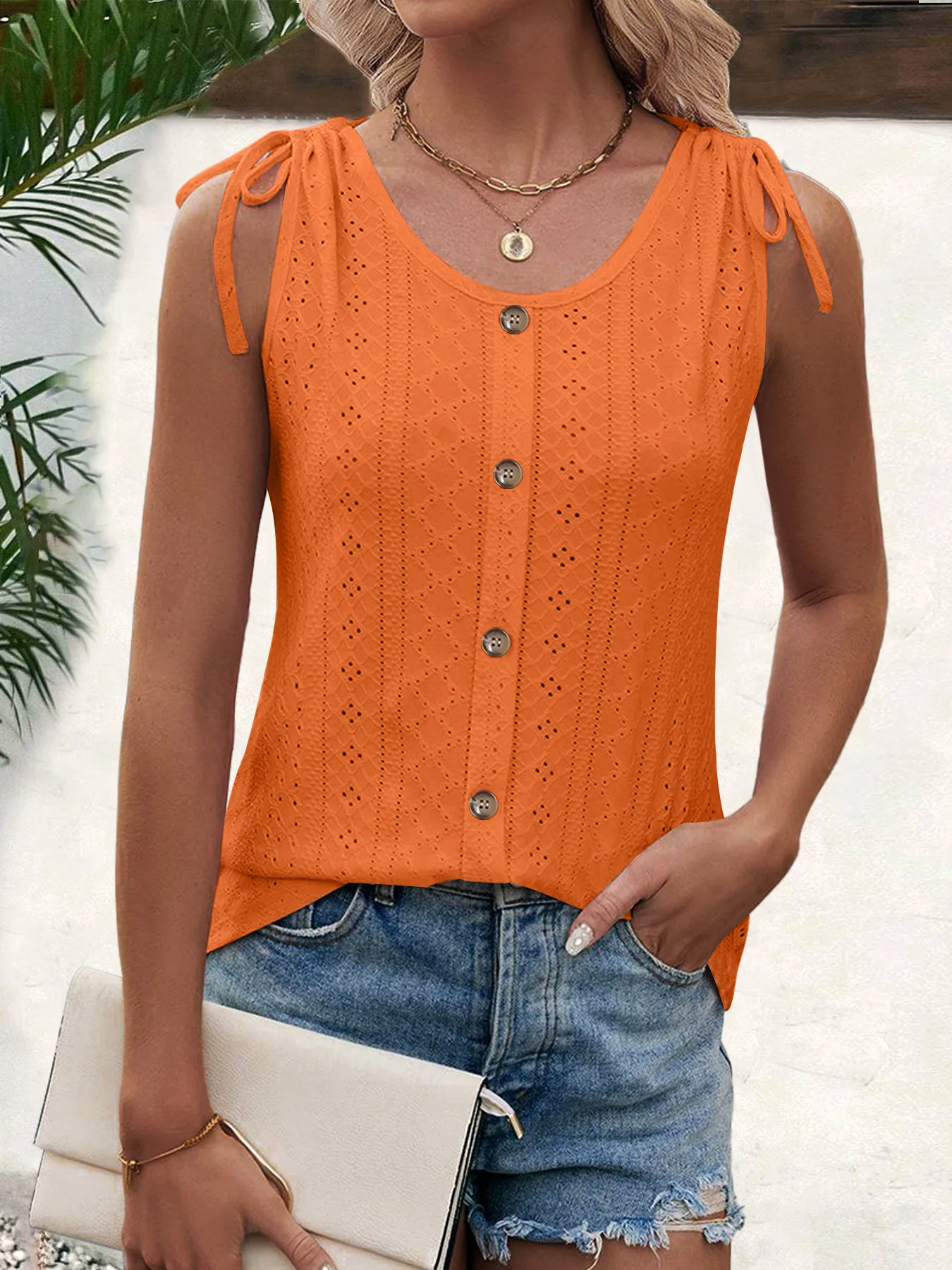 Pixor Spring And Summer New Women's Sexy Casual Solid Color U-neck Vest T-shirt Orange