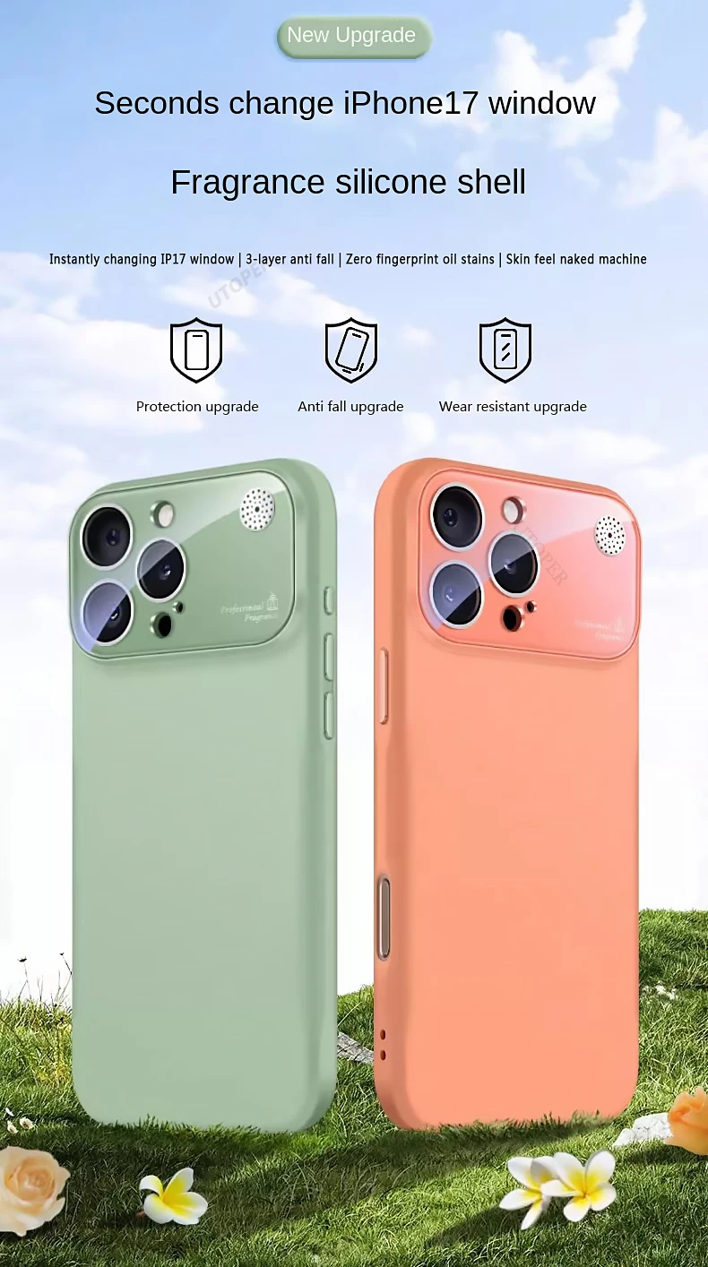 Trendy Style Liquid Silicone Anti-scratch Case for iPhone 17 16 15 14 13 12 11 Pro Max Plus Air Aromatherapy Large Window Cover